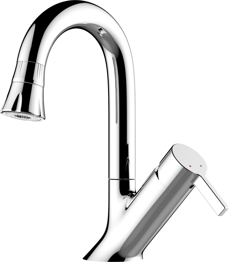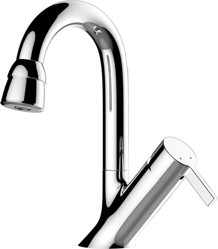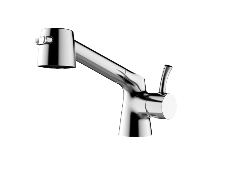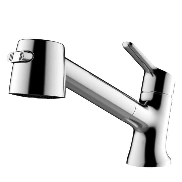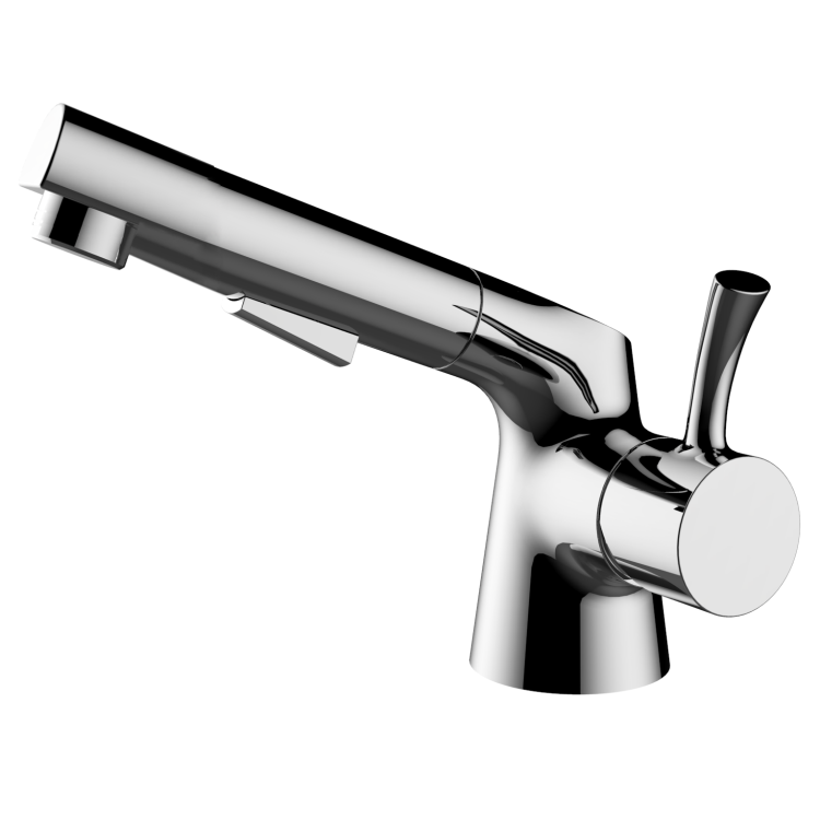 Single-lever basin mixer pull-out spray