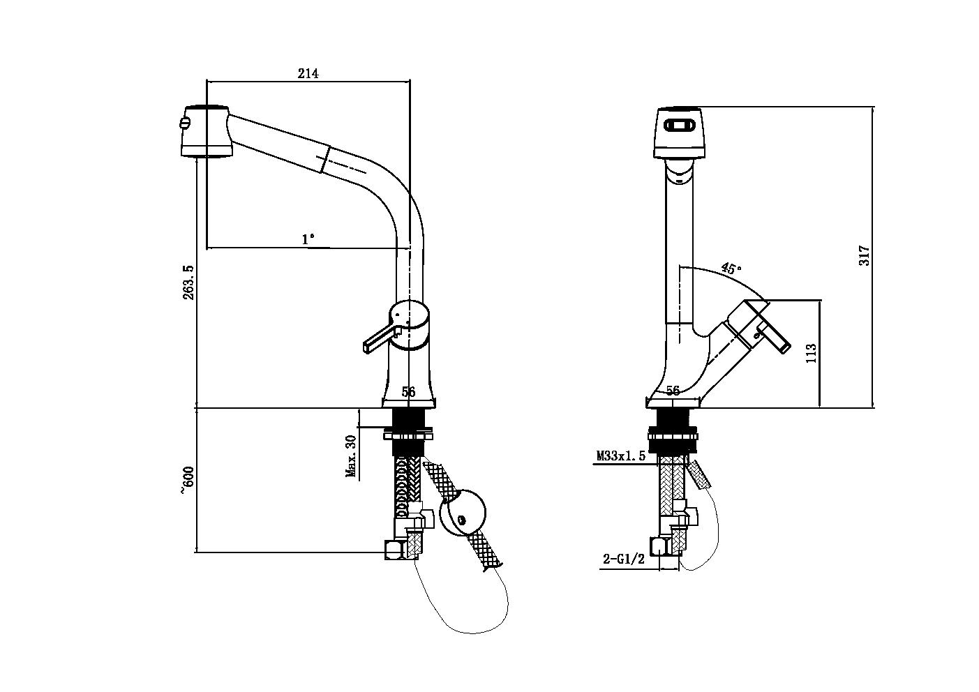 Description:Single-lever kitchen mixer pull-out spray